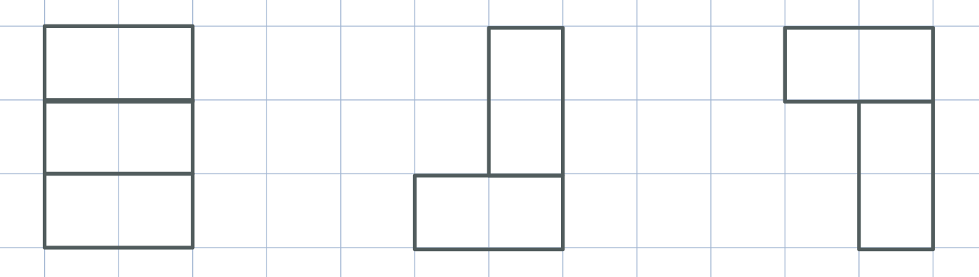 만약 위 그림의 첫번째의 경우처럼, 블록을 늘어놓을때 맨 오른쪽 끝에 반드시 두칸을 완전히 차지하도록 놓는다면, 결국에 dp[i]는 dp[i-1]과 같을 것이다 (블록은 짝수개밖에 놓지 못하므로 i-2가 아닌 i-1로 두었다). 하지만 당연히 이게 끝이 아닌데, 오른쪽 두 경우 처럼 dp[i-1]을 직접적으로 가져오기 애매한 경우가 있다.