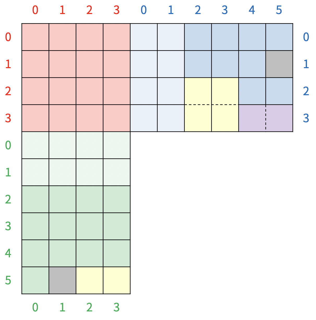 - 초록색, 파란색 보드의 방향이 다르다. 매 연산마다 하나의 보드를 transpose 하는 방법보다는 애초에 새로 블록을 놓을 때 블록을 전치해서 놓는편이 연산량도 적고 코드 작성도 편할 것이다.